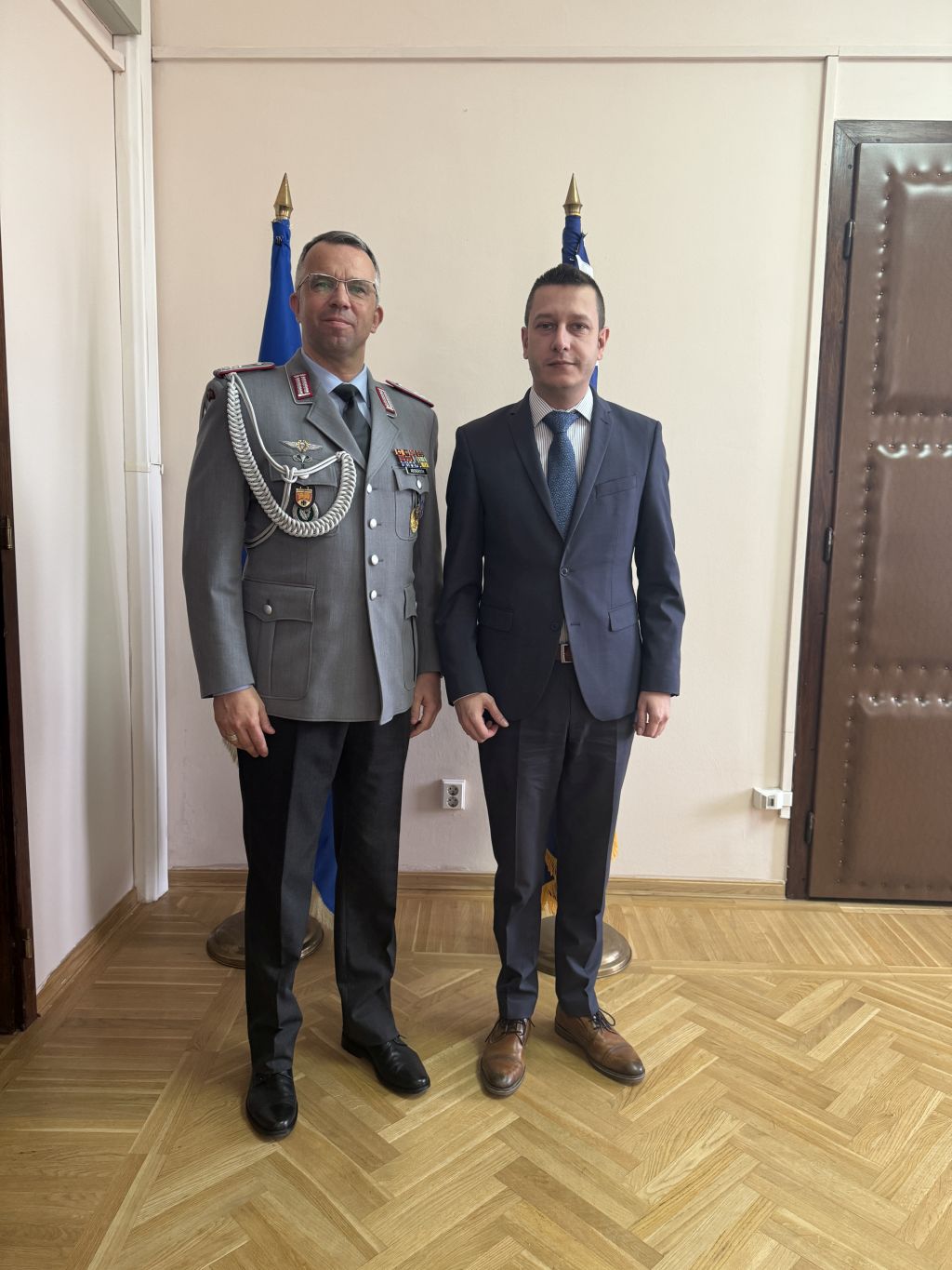 Zamjenik ministra odbrane Bosne i Hercegovine, Aleksandar Goganović, primio je u posjetu vojnog atašea Savezne Republike Njemačke pukovnika Marca Abendrotha, 28. januara 2025. godine.