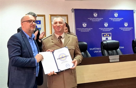 U ime Oružanih snaga BiH priznanje Kantonalnog štaba civilne zaštite Unsko sanskog kantona primio je pukovnik Suvad Rogo, načelnik odjeljenja za civilno-vojnu saradnju ZŠ OS BiH, a na ceremoniji uručenja bili su prisutni i pukovnici OS BiH Vahid Podžić iz OK OS BiH i Said Velić, komandant 2. pješadijskog bataljona 6.pbr OS BiH u Bihaću.