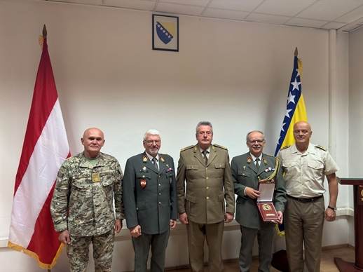 Načelnik Zajedničkog štaba Oružanih snaga Bosne i Hercegovine generalpukovnik Gojko Knežević zajedno sa zamjenicima generalmajorima Tomom Kolendom i Mirsadom Ahmićem primio je u službenu posjetu odlazećeg vojnog atašea Republike Austrije, brigadira Ericha Simbürgera i novoimenovanog Christiana Hahna.
