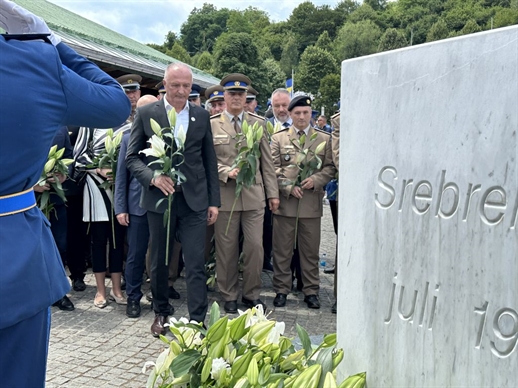 Zamjenik predsjedavajuće Vijeća ministara BiH i ministar odbrane BiH Zukan Helez prisustvovao je komemoraciji, klanjao dženazu i položio cvijeće nedužno stradalim žrtvama genocida u Srebrenici, u petak 11. jula 2025. godine.