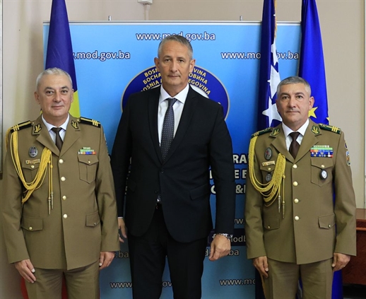 Zamjenik ministra odbrane Bosne i Hercegovine Slaven Galić primio je danas, 24. jula 2025. godine, brigadira Robertina Ciobanua, odlazećeg vojnog atašea Rumunije u BiH, kao i novoimenovanog vojnog atašea te zemlje, brigadira Cosmina Serbana.