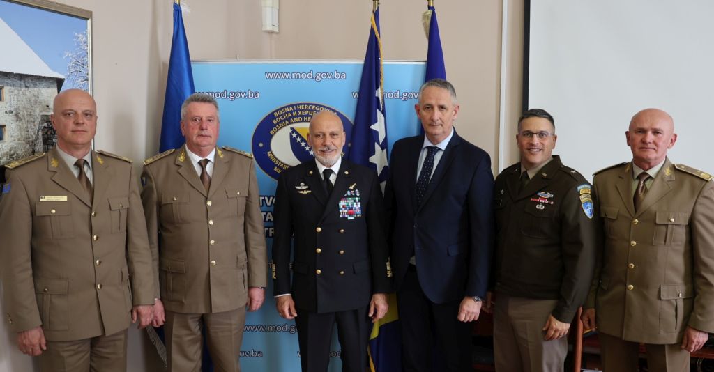 Delegacija Ministarstva odbrane i Oružanih snaga Bosne i Hercegovine, na čelu sa zamjenikom ministra odbrane Slavenom Galićem, u četvrtak 16. aprila 2026. godine, u sjedištu MO BiH u Sarajevu, u službenu je posjetu primila predsjedavajućeg Vojnog komiteta (MC) NATO-a admirala Giuseppea Cavoa Dragonea.