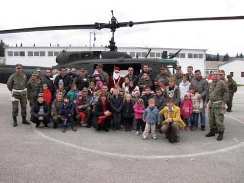 No, Djed Mraz u Hercegovinu nije stigao sa saonicama jer nema snijega a niti pješke jer je imao mnogo darova, nego na radost okupljene djece sa helikopterom OS BiH. Nakon druženja sa veselim starcem koji je uručio poklone, na pisti za postrojavanje prezentovana je vojna oprema, metodsko – pokazna vježba, a u prostorijama vojne policije i film o 4. pješadijskoj brigadi.