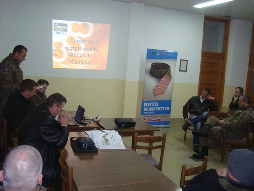 Tim koji je prezentirao današnju radionicu je činio major Kajtaz Hajdar, Dejan Ćapin, (Centar za regrutovanje i tranziciju Čapljina) Renato Kunštek (Međunarodna organizacija za migarciju) i Turković Hasret ( odsjek za tranziciju personala Ministarstva odbrane BiH).