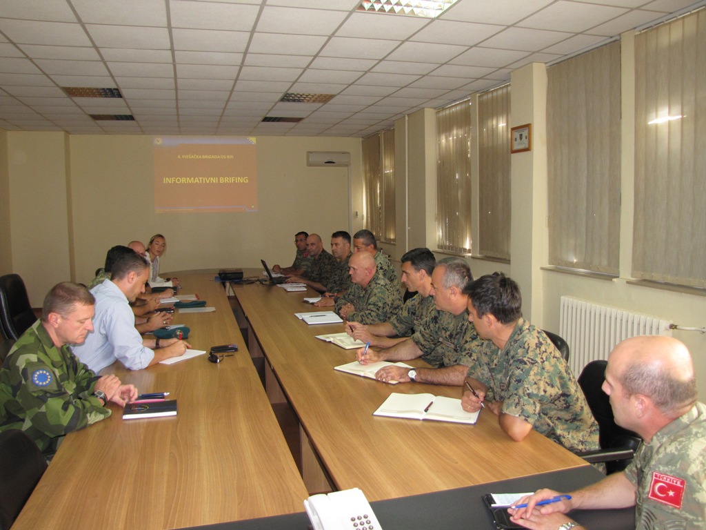Nakon informativnog brifinga o 4. pbr, šef pridruženog savjetodavnog tima EUFOR-a (EAT), pukovnik Ayhan Baklacioglu, kroz informativni brifing, goste je upoznao sa trenutnim aktivnostima savjetodavnog tima EUFOR-a, koji se nalazi u komandi 4.pbr te planovima za naredni period.