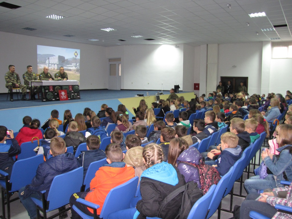 Druženje sa učenicima osnovnih škola je započeto u kino sali gdje smo naše goste pored riječi dobrodošlice, putem kratkog informativnog brifinga upoznali sa 4. pbr i jedinicama razmještenim na lokaciji Čapljina. Posebnu pažnju učenika privukli su video spotovi o 4. pbr putem kojih smo ih upoznali o dosadašnjim dostignućima i uspjesima komande i jedinica brigade. Ova prilika je iskorištena i za realizaciju časa obuke za učenike i nastavnike na kojem su upoznati sa svim vrstama protiv pješadijskih mina, kao i način na koji demineri OS BiH iste pronalaze na prostorima cijele Bosne i Hercegovine.