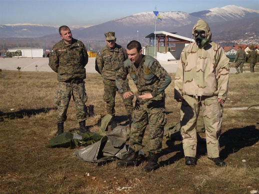Stručni tim za NHBO (nuklearno hemijsko biološka odbrana) iz sastava brigade Taktičke podrške u sastavu OR-6 Elvir Džibrić i OR-6 Nebojša Tripunović, 19. i 20.02.2015. godine održali su specijalističku NHBO obuku djelatnika 1. čete (Deklarisane po OCC E&F programu) na lokaciji kasarne „Ante Bruno Bušić“.