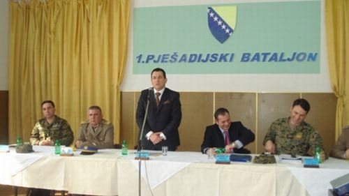 Uvodni brifing delegacijama o lokaciji i aktuelnostima u bataljonu (uz prisustvo dijela starješina komande brigade i bataljona) prezentovo je komandant 1. pješadijskog bataljona pukovnik Mirzet Lubrenović. Potom su ministar odbrane BiH dr. Selmo Cikotić, Parlamentarni vojni povjerenik gospodin Boško Šiljegović i general-major Slavko Puljić, informisali starješine komande bataljona o aktuelnim dešavanjima u MO i OS BiH, sa akcentom na proces tranzicije personala.