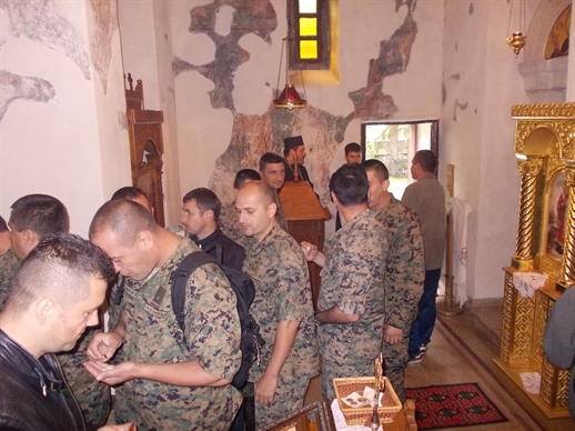 Po dolasku u manastir poklonike je ugostio Iguman Manastira, otac Danilo sa monaškim bratstvom poželivši im dobrodošlicu. Održan je i historijski čas, gdje je Iguman, otac Danilo govorio o postanku manastira, njegovoj duhovnoj i historijskoj vrijednosti. Uz sasluženje vojnih sveštenika služena je i Sveta Liturgija.