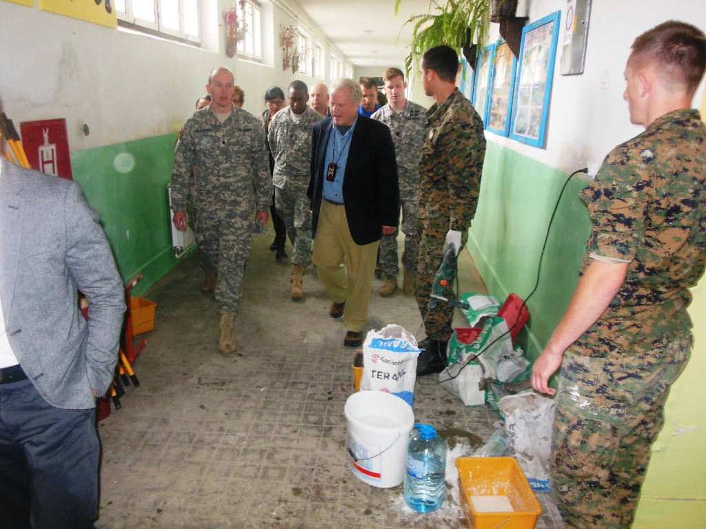 Tokom posjete, gospodin Nicholas Hill, pukovnik Scott Miller i brigadir Robert Sušac obišli su prostorije škole, gdje su imali priliku upoznati se sa problemima škole, obimom štete koju je ova škola pretrpila tokom poplava. Također, izvršili su uvid u radove koje izvode pripadnici OS BiH, EUFOR-a i američki kadeti kroz vježbu "Združeni napor 14". Svi oni su iskazali svoje iskreno zadovoljstvo aktivnostima i angažovanjem pripadnika na izvršenju i ovog zadatka, te naglasili važnost zajedničkog djelovanja.