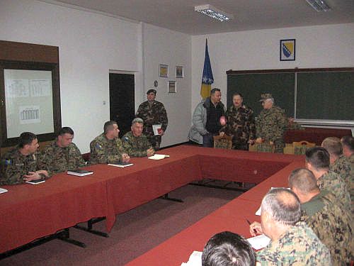Delegaciju je primio brigadni general Stamenko Novaković, komandant 6.pješadijske brigade. Tim povodom pored srdačne dobrodošlice sa svojim saradnicima, general Novaković je informisao goste o ključnim aktivnostima koje brigada realizuje sa akcentom na kolektivnu pripremu izvođenja obuke u 2011.godini. Svakako, to je bila i dobra prilika da se kroz interaktivni dio razgovora razmjene iskustva u angažovanju Oružanih snaga u slučaju elementarnih nepogoda, a kao primjer uzeta su nedavna dešavanja u BiH tokom poplava.