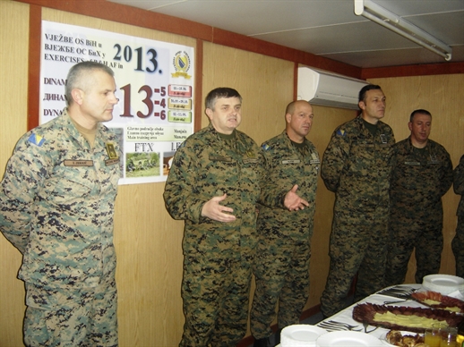 Prisutnima se obratio vršilac dužnosti komandanta OK OS BiH brigadni general Dragan Vuković, čestitajući prisutnima predstojeće praznike i zahvalivši se svim pripadnicima OK OS BiH na ostvarenim rezultatima rada u 2013. godini.