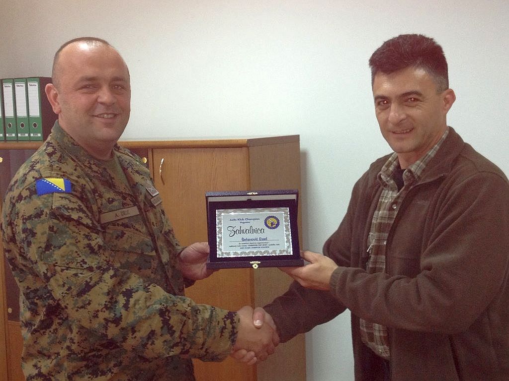 Cilj posjete bio je uručivanje zahvalnice brigadiru mr. Esadu Šejtaniću radi pružanja pomoći Judo klubu “Champion” Vogošća. Naime, u protekloj i ovoj godini u vrijeme održavanja takmičenja – međunarodnog turnira u judo sportu, čiji je organizator bio klub “Champion” iz Vogošće, njihovim gostima takmičarima i trenerima obezbijeđen je smještaj u kasarni “Rajlovac OS BiH”.