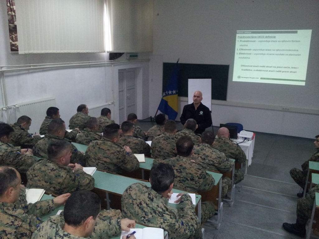 U organizaciji Norveške nevladine organizacije NPA (Norwegian Peoples Aid), a u cilju implentacije realizacije Plana jačanja kapaciteta Deminerskog bataljona OS BiH u kasarni „Rajlovac OS BiH“ 12. i 13.02.2014. godine, izvršena je realizacija obuke na temu „Uloga vođe radilišta u povećanju produktivnosti u tehničkom izviđanju i čišćenju“.