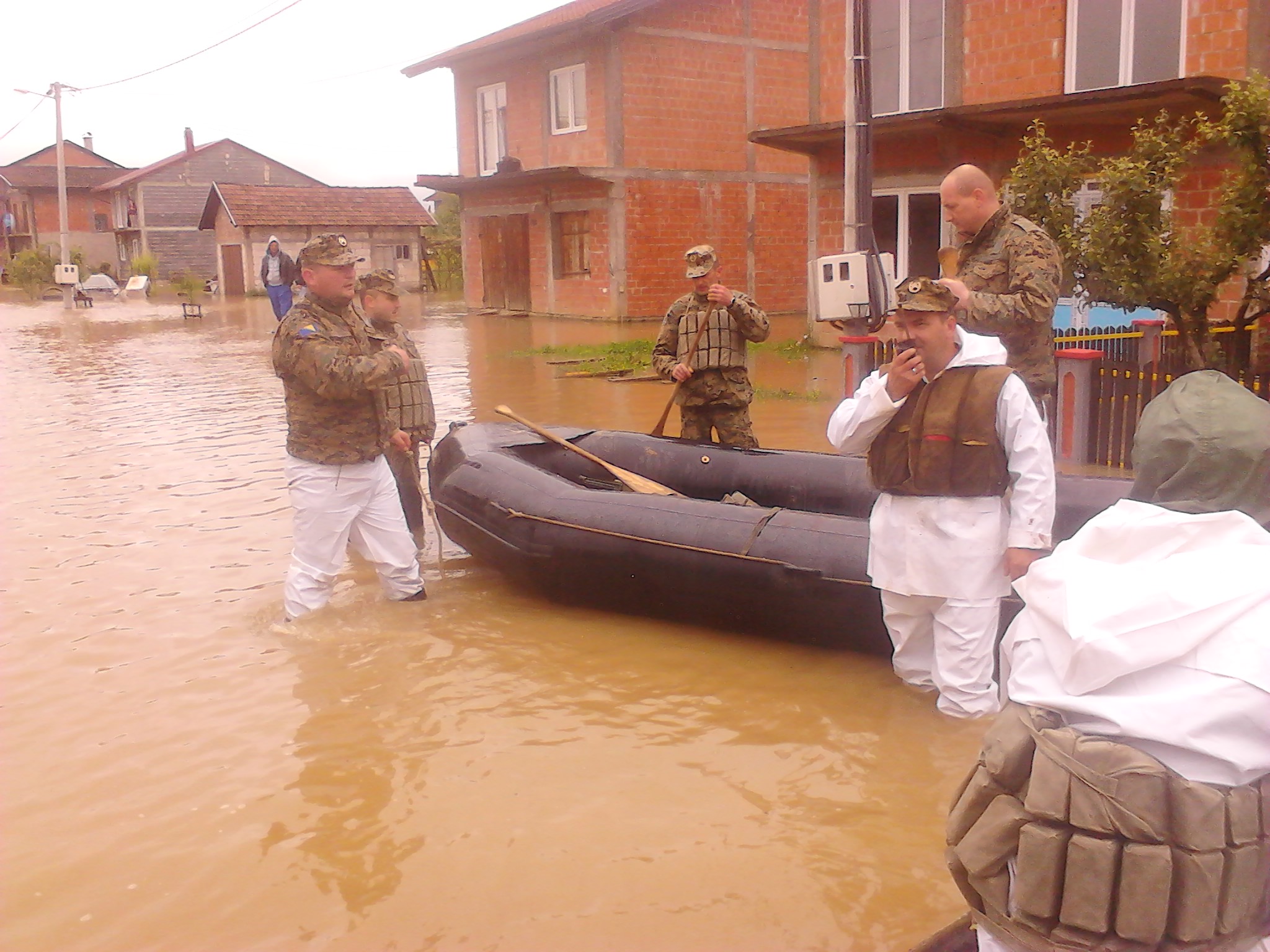 Ovi pripadnici su od tada na licu mjesta danonoćno, dajući sve od sebe na zaštiti i spašavanju stanovništva i lične imovine. Uporedo sa tim, Inžinjerijski bataljon juče je bio aktiviran i na sprečavanju izlijevanja rijeke Ukrine u gradu Derventa i na izvlačenju ljudi iz poplavljenih banjalučkih naselja. Sva raspoloživa lica i sredstva na lokaciji su angažovana na ovoj aktivnosti koja su koordinisana sa predstavnicima civilne zaštite i općine Derventa. Može se slobodono reći da je ponajviše zahvaljujući pravovremenim odlukama komande inž.bat. i angažovanjem inž. mašina spriječeno veće izlijevanje rijeke Ukrine u samom gradu, a time i umanjili štetu koja bi u suprotnom nastala. Tako se spriječilo i podizanje nivoa plavnog talasa u kasarni „Zdravko Čelar“ čime je izbjegnut scenario iz 2010. godine kada su svi objekti bili pod vodom. Angažovanjem inž.mašina, kamiona i čamaca u toku prethodna dva dana izvučeno je preko 500 lica koja su bila ugrožena u svojim kućama u Doboju, Derventi i Banjaluci. Danas, 17.05.2014.god, pripadnici inž.bat. su angažovani na doturu namirnica lokalnom stanovništvu u naseljima koja su juče poplavljena. Civilna zaštita općine Dervente je u ovoj aktivnosti u potpunosti oslonjena na ljudstvo i resurse kojima raspolaže ova jedinica. Danas je dakle treći dana kako su pripadnici inž.bat. neprekidno angažovani u akciji spašavanja unesrećenog stanovništva od elementarne nepogode koja se nastavlja do daljnjeg.