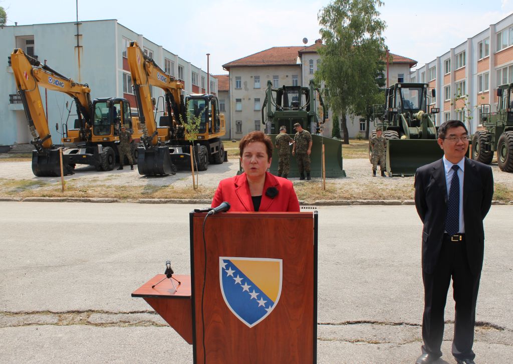 Ministrica odbrane gospođa Marina Pendeš je istakla da je velika čast biti domaćin jedne ovakve ceremonije te ukazala na značaj ove donacije u jačanju operativnosti i kapaciteta Oružanih snaga Bosne i Hecegovine. Ministrica odbrane je također naglasila i činjenicu da je prethodna donacija u inžinjerijskim mašinama od strane NR Kine imala veliku ulogu u pružanju pomoći civilnim strukturama u prethodnim godinama, a posebno u angažovanju Oružanih snaga Bosne i Hercegovine tokom pružanja pomoći u spašavanju i otklanjanju posljedica velikih poplava u Bosni i Hercegovini u 2014. godini. Gospođa Marina Pendeš je istakla da će i inžinjerijska sredstva koja su danas predata Oružanim snagama Bosne i Hercegovine biti odmah upućena na pružanje pomoći civilnim strukturama diljem Bosne i Hercegovine. Ministrica odbrane gospođa Marina Pendeš se na kraju još jednom zahvalila na ovoj vrijednoj donaciji koja predstavlja veoma važan segment u nastojanju da Oružane snage Bosne i Hercegovine budu faktor sigurnosti kako u regiji tako i u svijetu.
